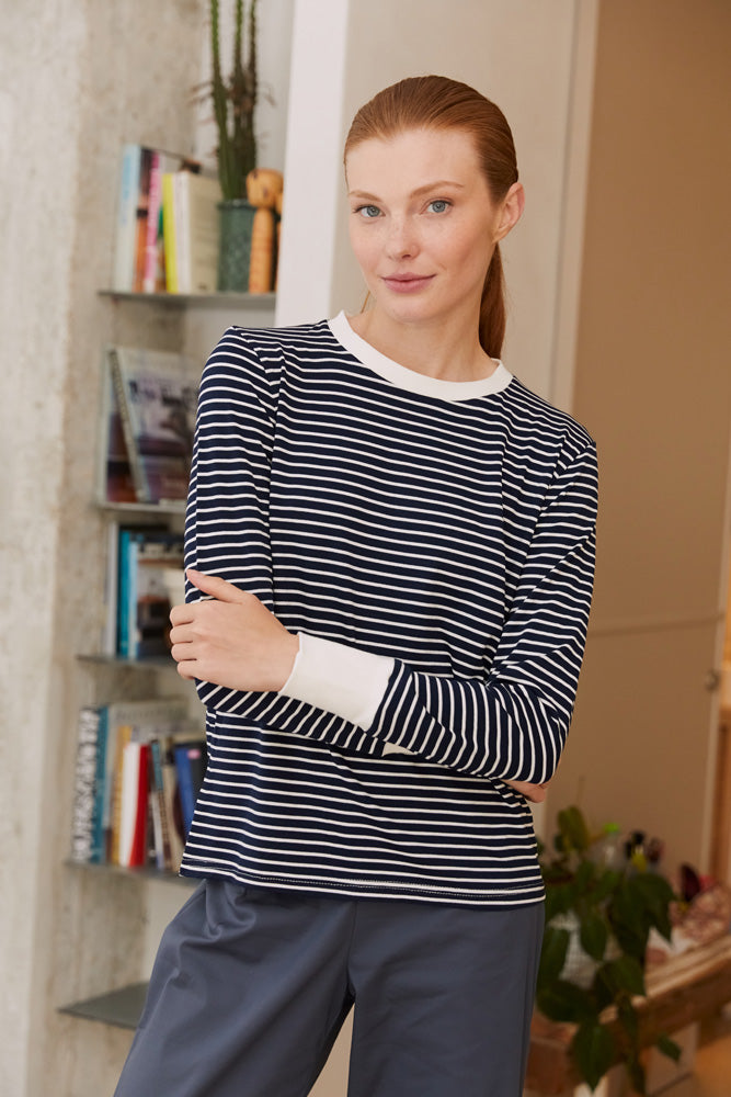 לחולצה מנג'ט ריב במחשוף וחפתי ריב בשרוולים.