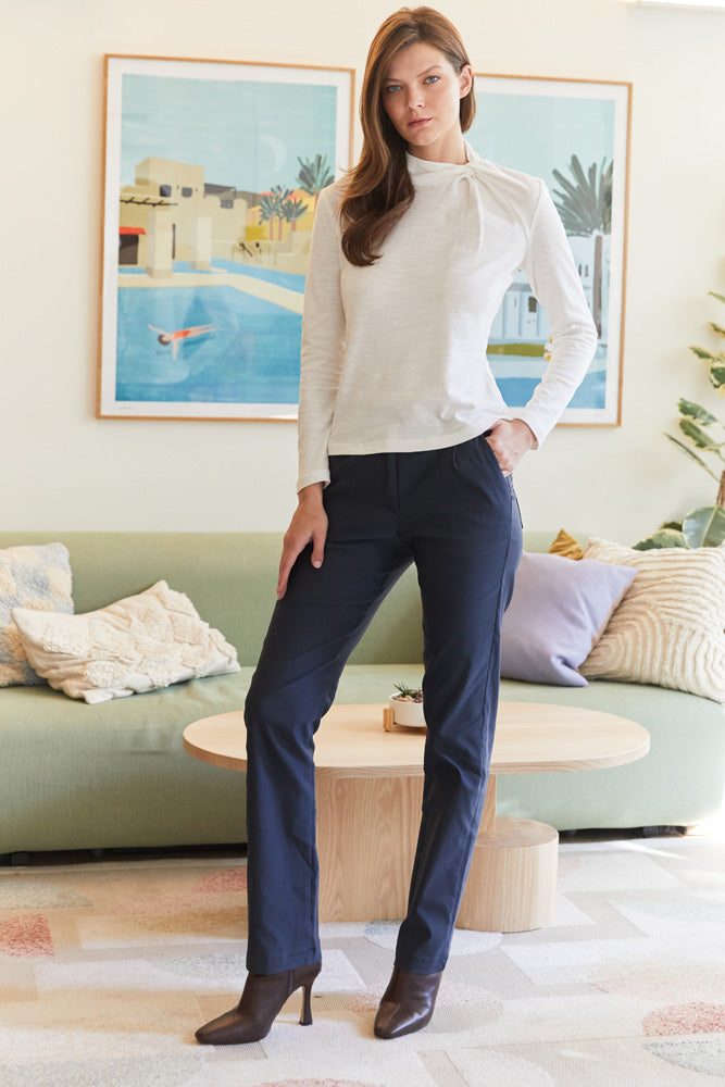 מכנסיים מחויטים במראה קז'ואל-סמי מחויט, מבד כותנה לייקרה דק ונעים.