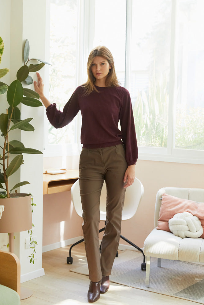 מכנסיים מחויטים במראה קז'ואל-סמי מחויט, מבד כותנה לייקרה דק ונעים.