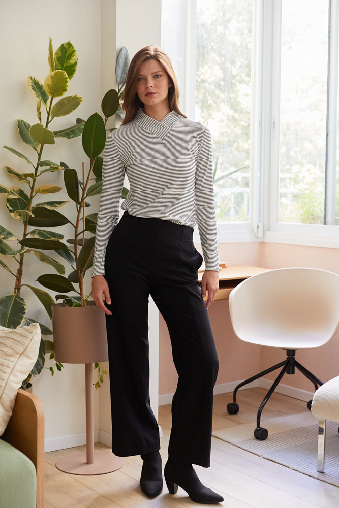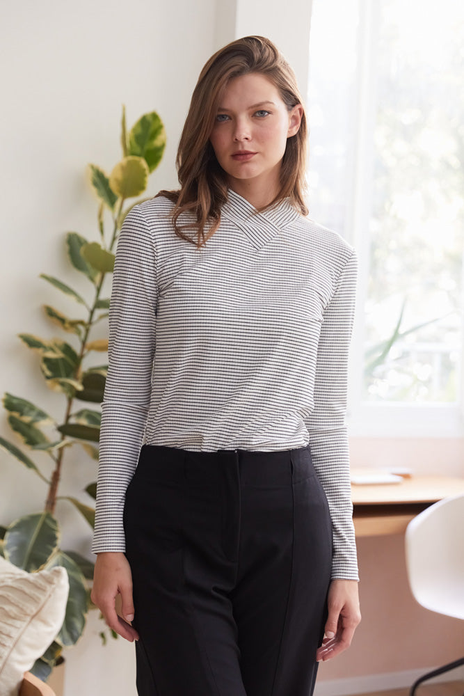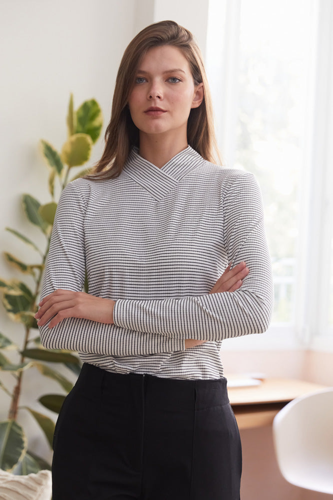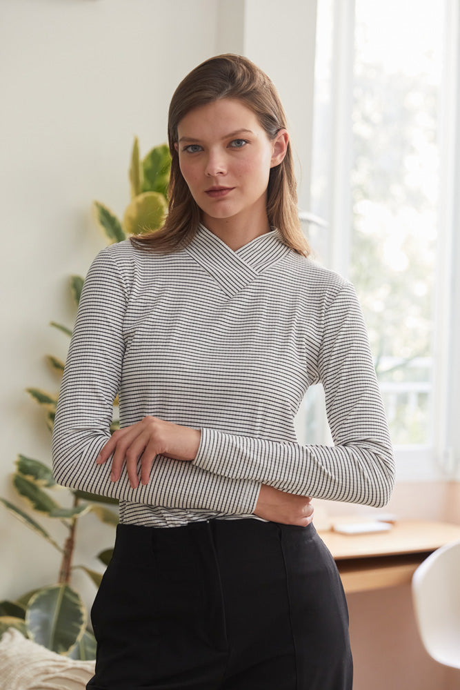 חולצת סריג ישרה עם צווארון גולף מעטפת