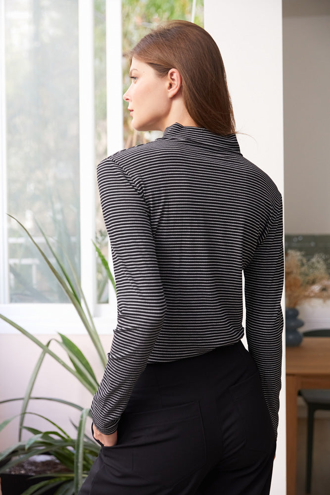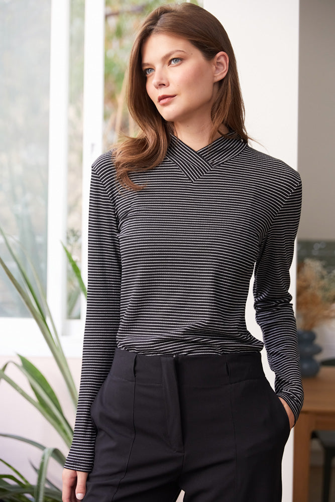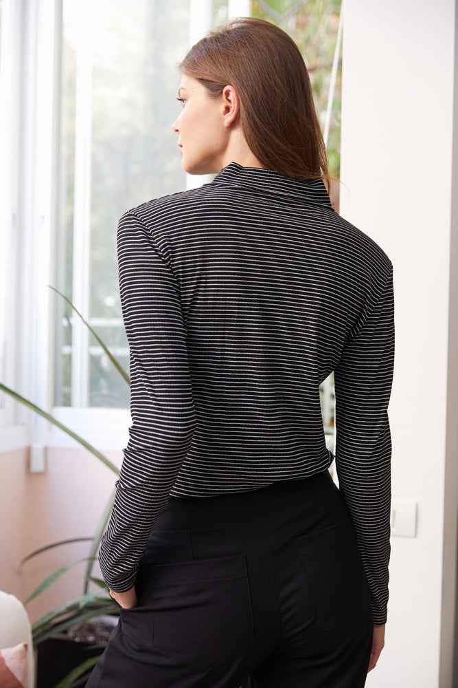 חולצת סריג ישרה עם צווארון גולף מעטפת