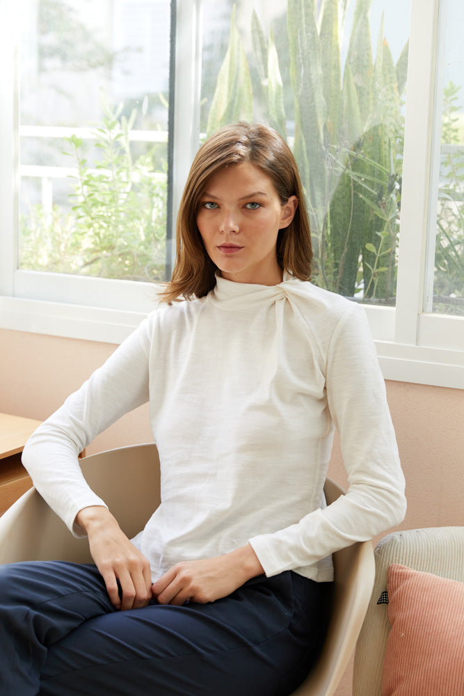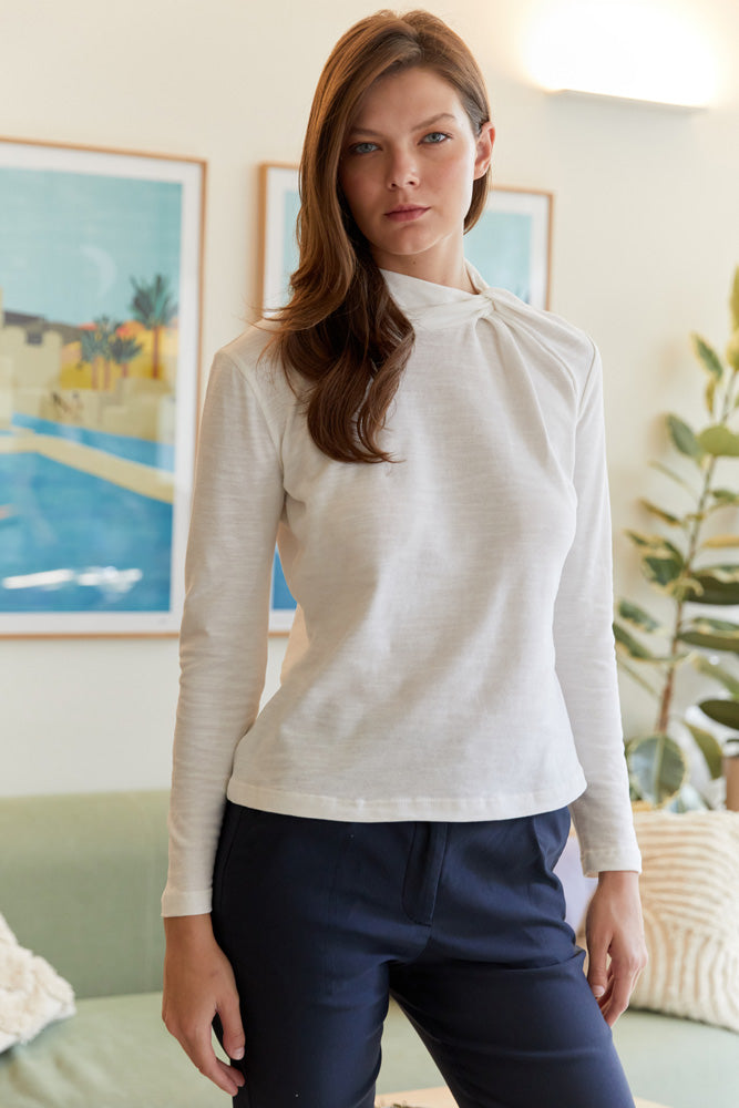 חולצת גולף עם אלמנט קשר צדדי בצוואר