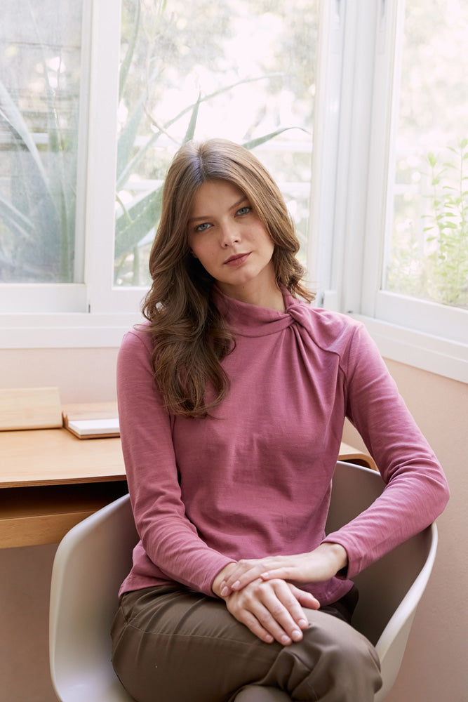 חולצת גולף עם אלמנט קשר צדדי בצוואר