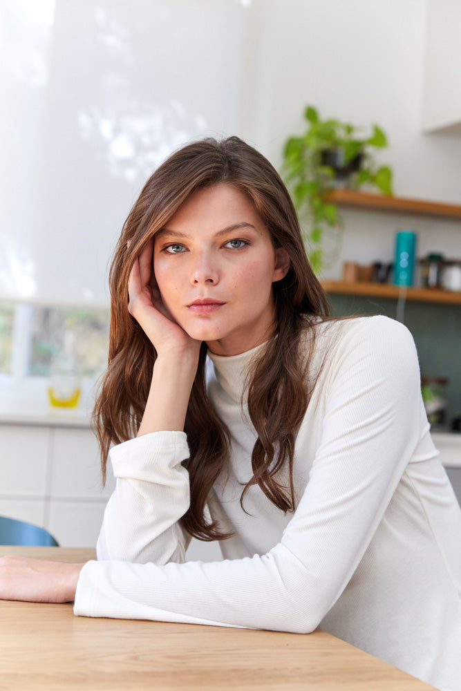 חולצת בגיזרה ישרה בעלת צווארון גולף מובנה נשפך