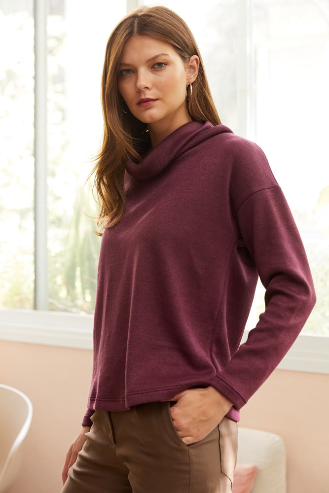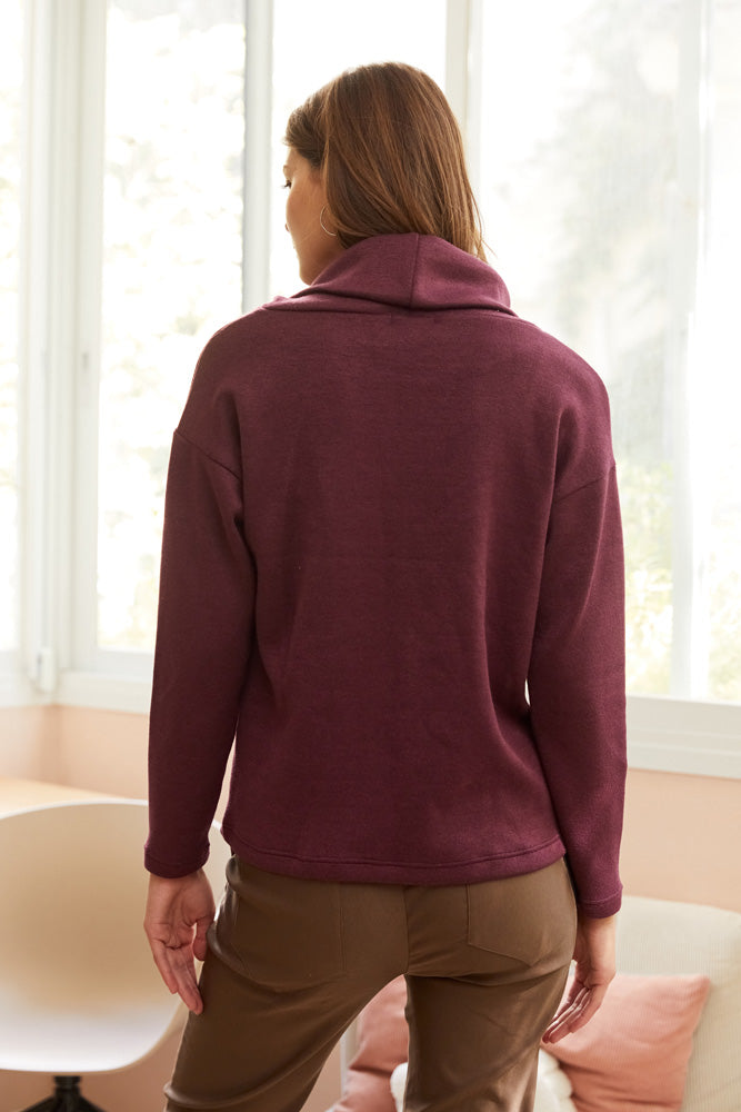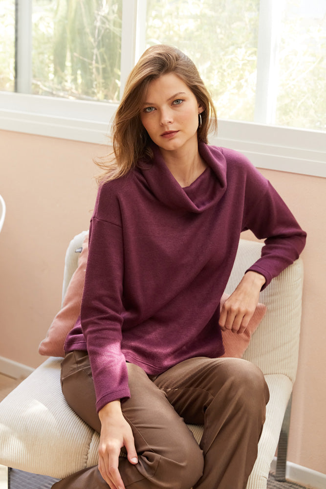 חולצת סריג ויסקוזה בגיזרה ישרה ורחוקה מהגוף עם צווארון נשפך.