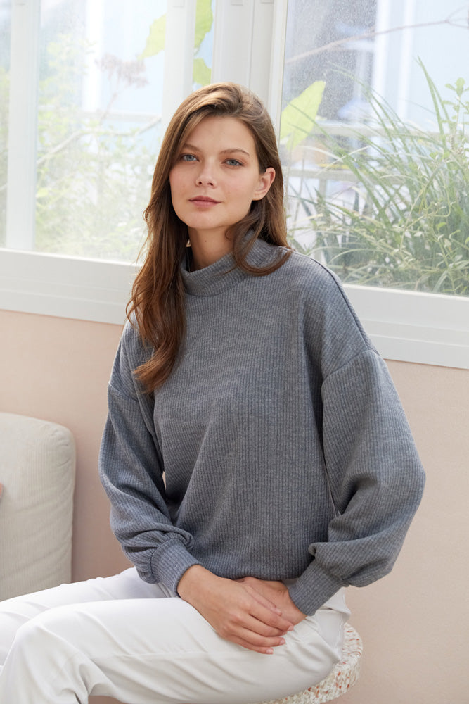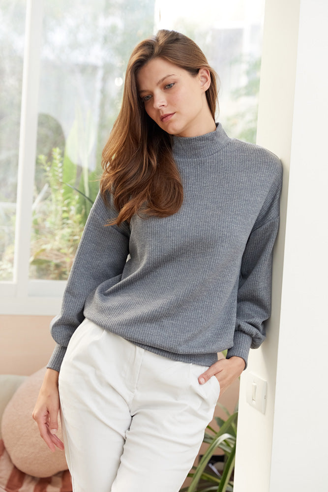 חולצת סריג בגיזרה רחוקה מהגוף, עשויה מבד סריג ויסקוזה טבעי, עם מעט לייקרה