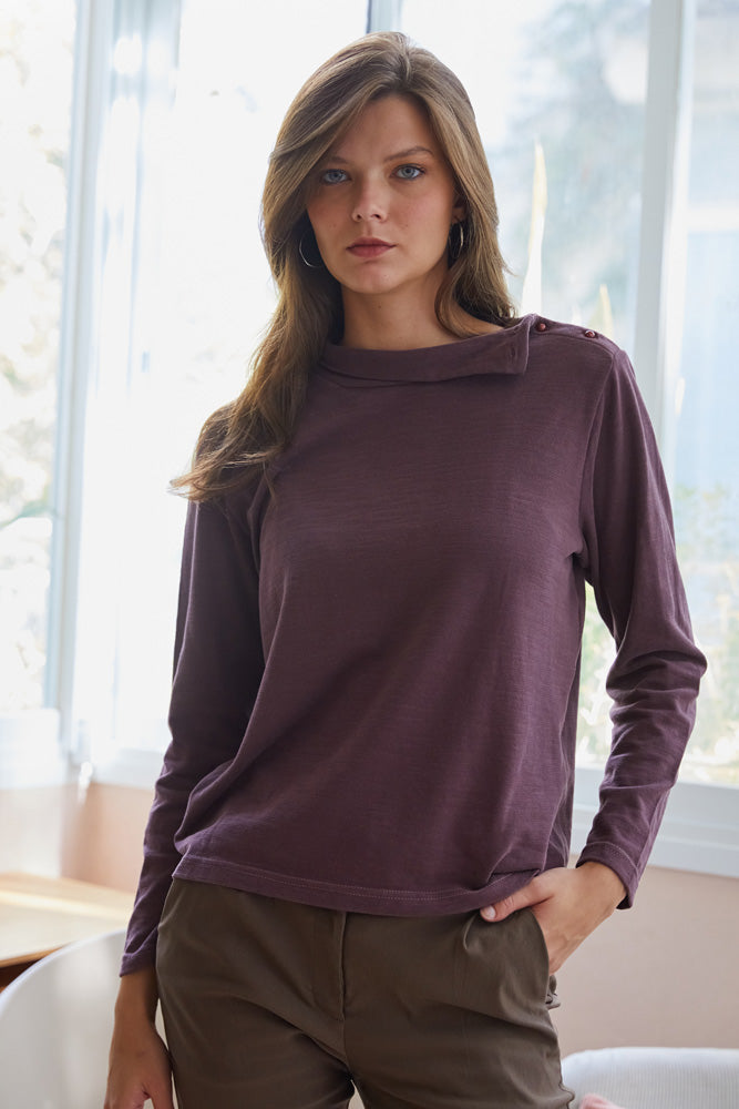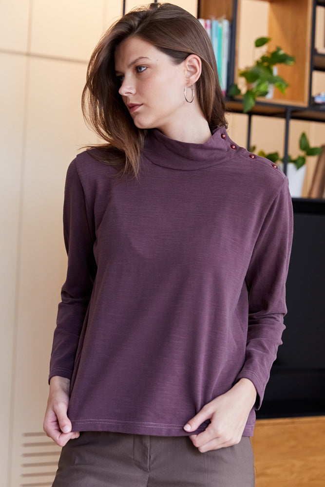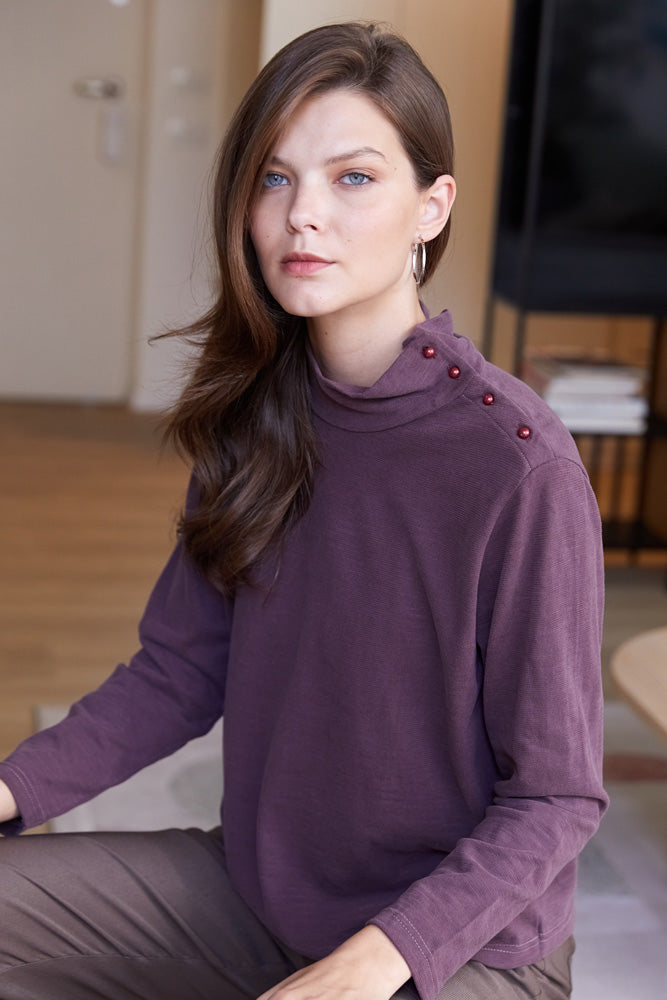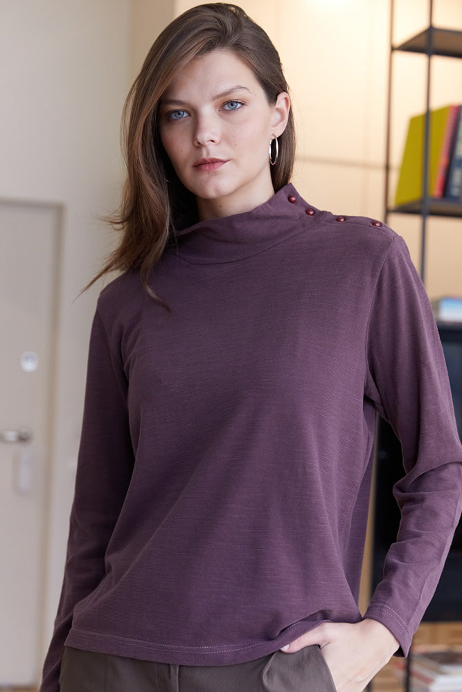 חולצה סריג בגיזרה ישרה בעלת כפתורים בכתף