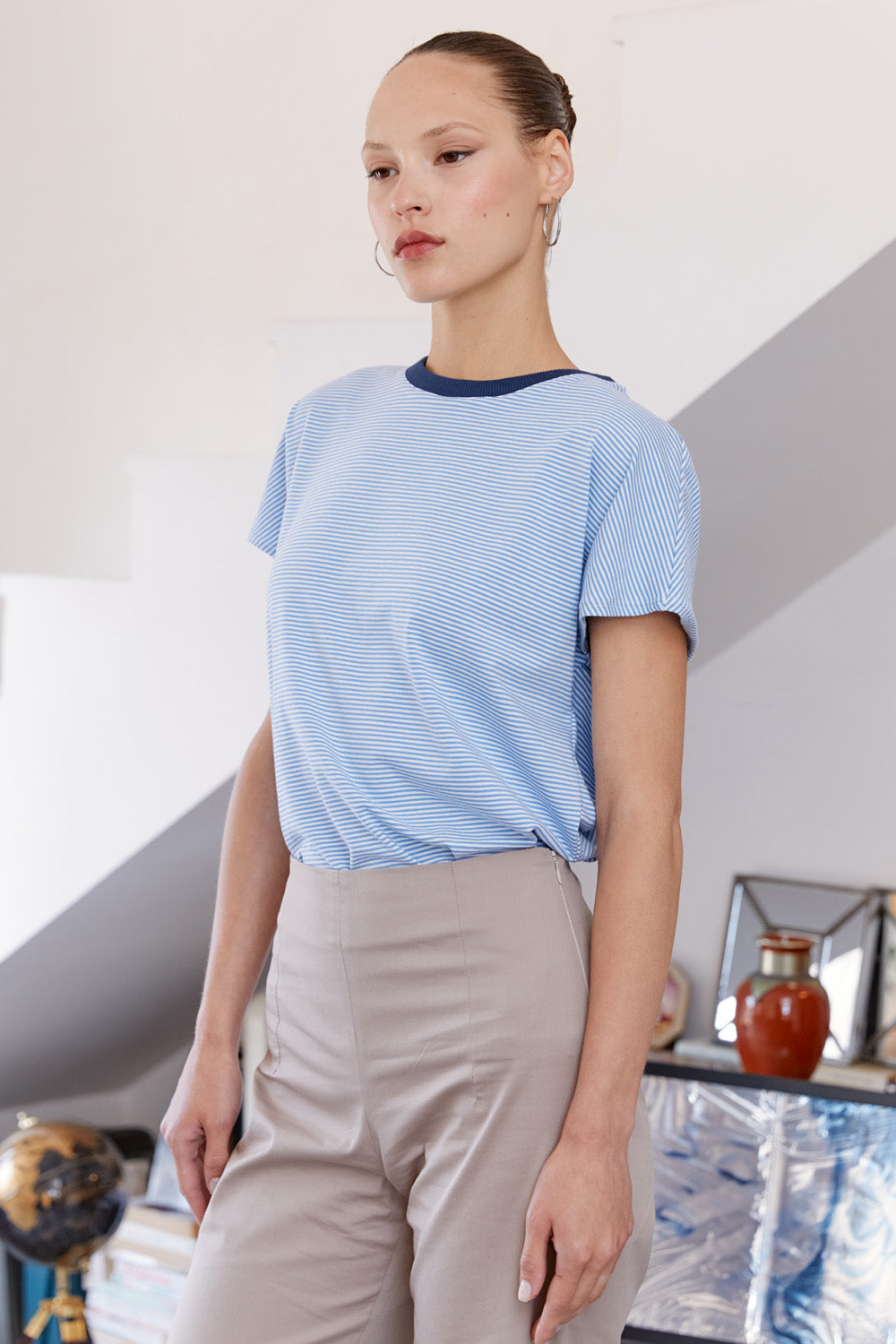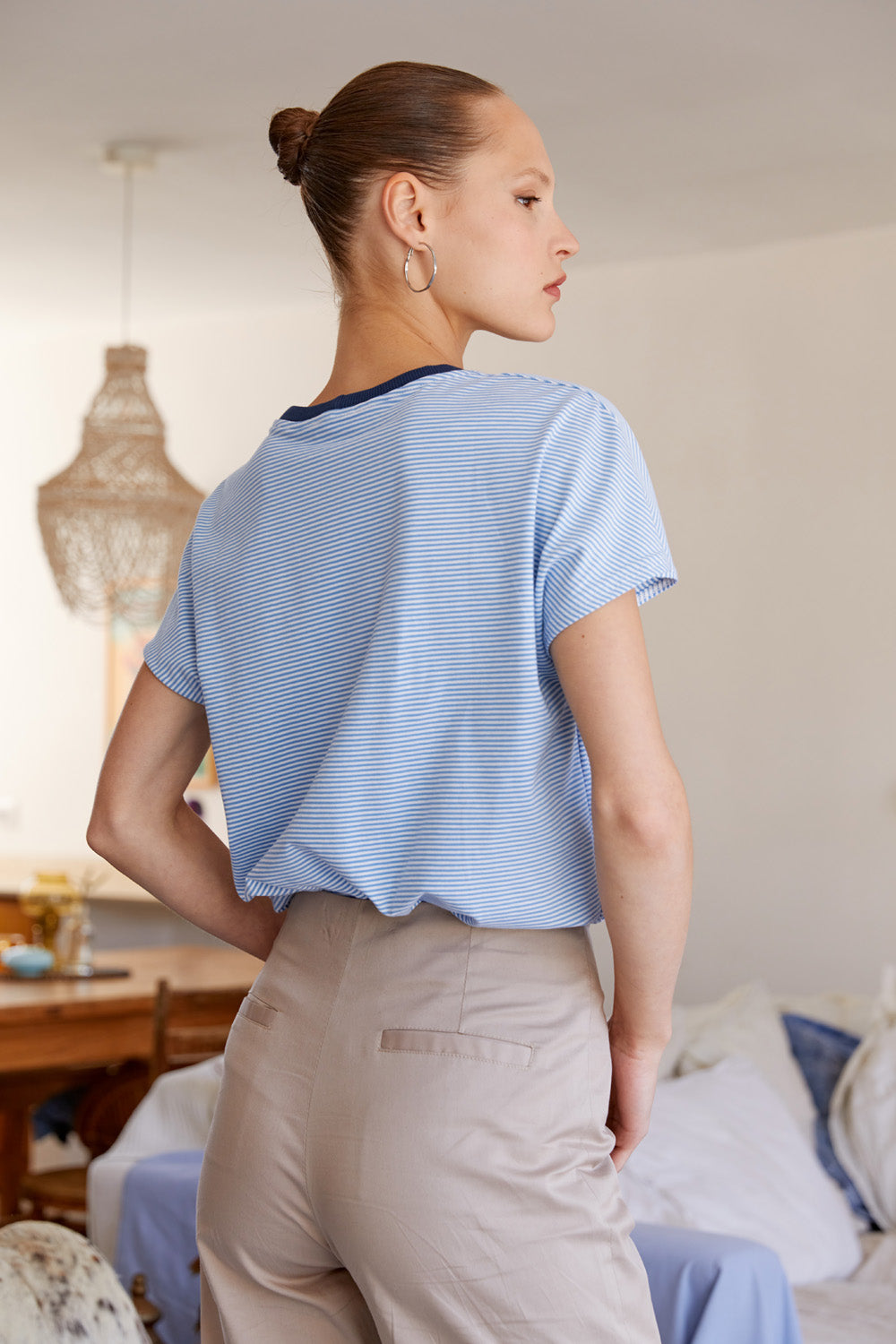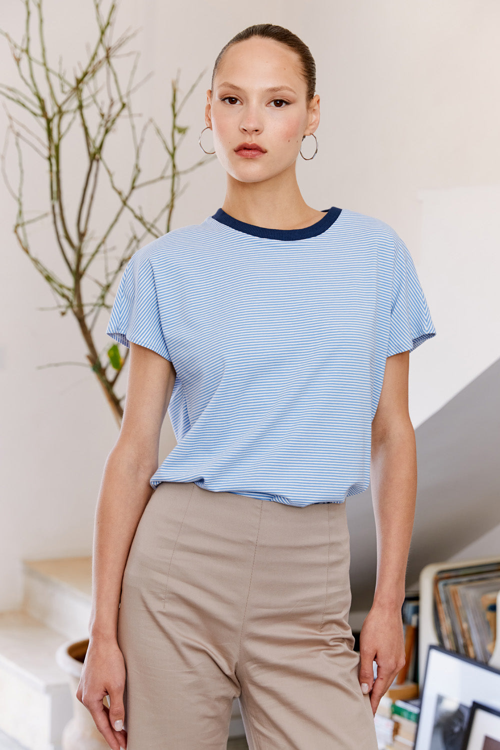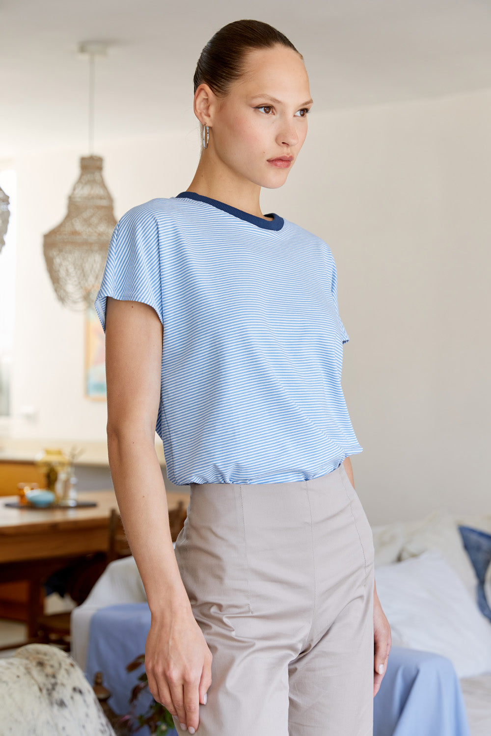 חולצת לייני פסים תכלת לבן