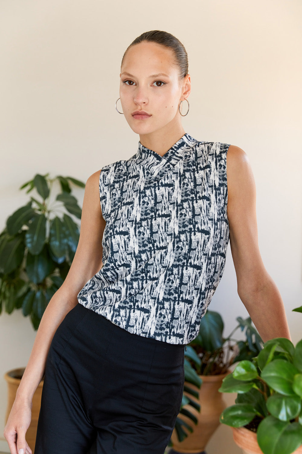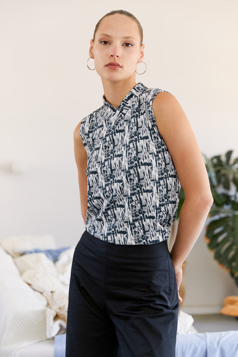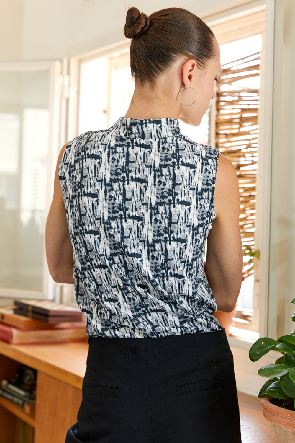 חולצת אוולין הדפס שמנת-אפור-שחור