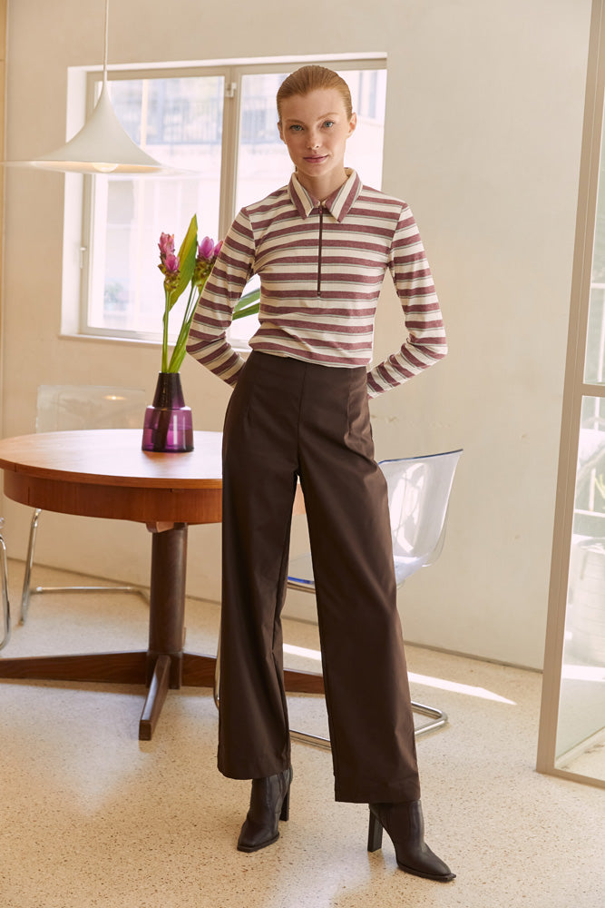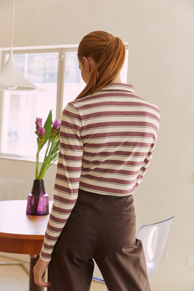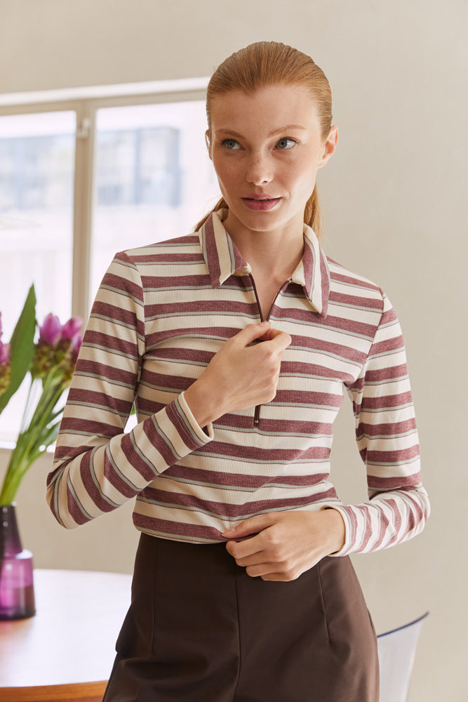 חולצת ריאן ריב פסים בורדו שמנת מנטה